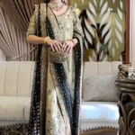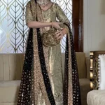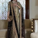 Where tradition whispers through threads of gold and modernity answers in bold black introducing the Haris Shakeel Gold & Black Dress, a curated statement of contrast, elegance, and power.