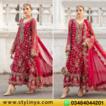 Maria.B Luxury Chiffon pink Dress Embroidered 3 Piece